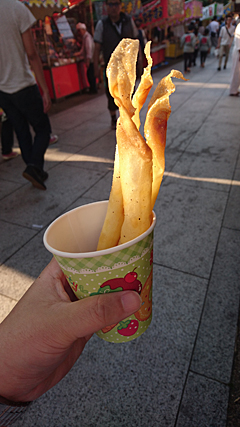 というわけで、食べ歩き用にコンガリ香ばしい“カリカリチーズ揚げ”なるものをカリカリといただきながら、