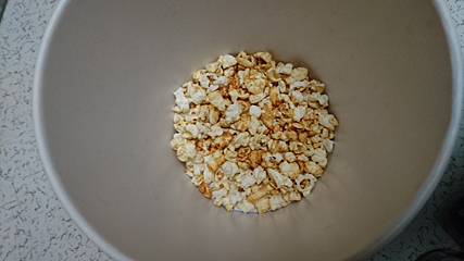 映画の直前に食事したためにあまりポップコーンが進まなくて、もったいないので家に持ち帰ったのでした。