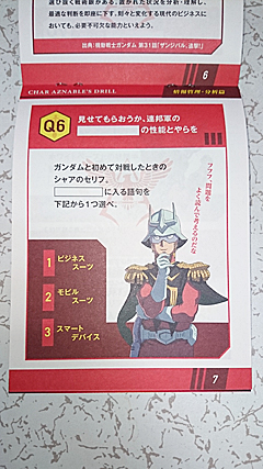 そんな「シャア専用ドリル」の中身はというと、「機動戦士ガンダム」の本編で発せられたシャアのセリフ難易度低めの穴埋め問題になっており、その解答を現代ビジネスのノウハウムリヤリ絡めているのですよ。