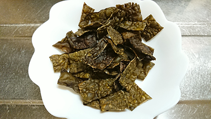 そして食後には、湯豆腐に使っただし昆布を一口大に切ってレンジでチンし、以前も作ったことがある“昆布チップス”にして、
