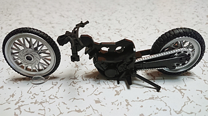 エンジンやタイヤ等々、バイクの中身パーツが中心なので、こちらだけ組めばバトルホッパーの素体くらいは出来上がりそうな雰囲気なのですが、前輪とハンドルをつなぐフロントフォークがA-sideの方に入っているので、こちらだけだと結局バイクの体を成さないのでした…(^-^;)