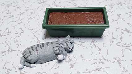 プランターの上でひなたぼっこをするネコをマスコット化したアイテムで、今回は「サバトラ」が出ました♪